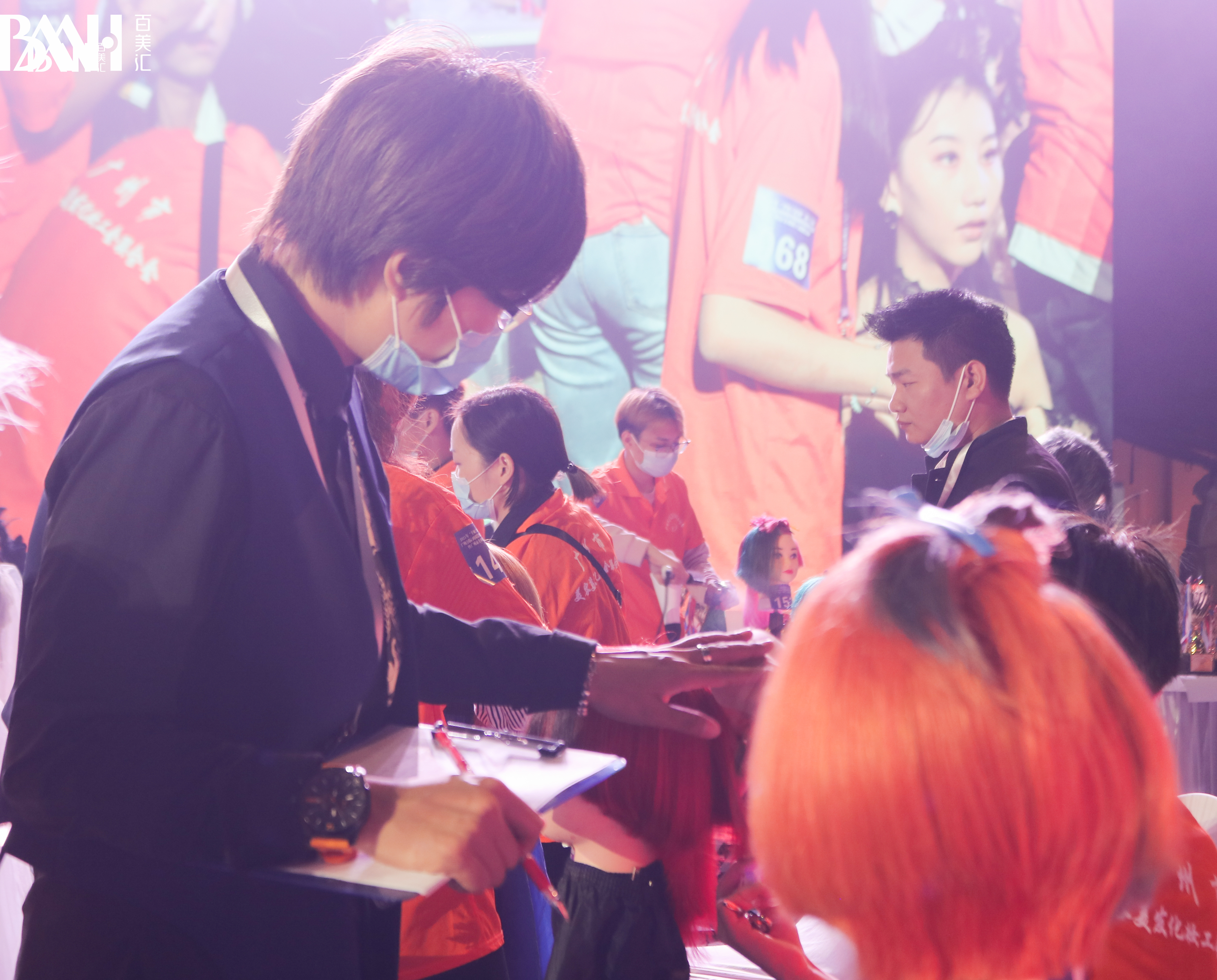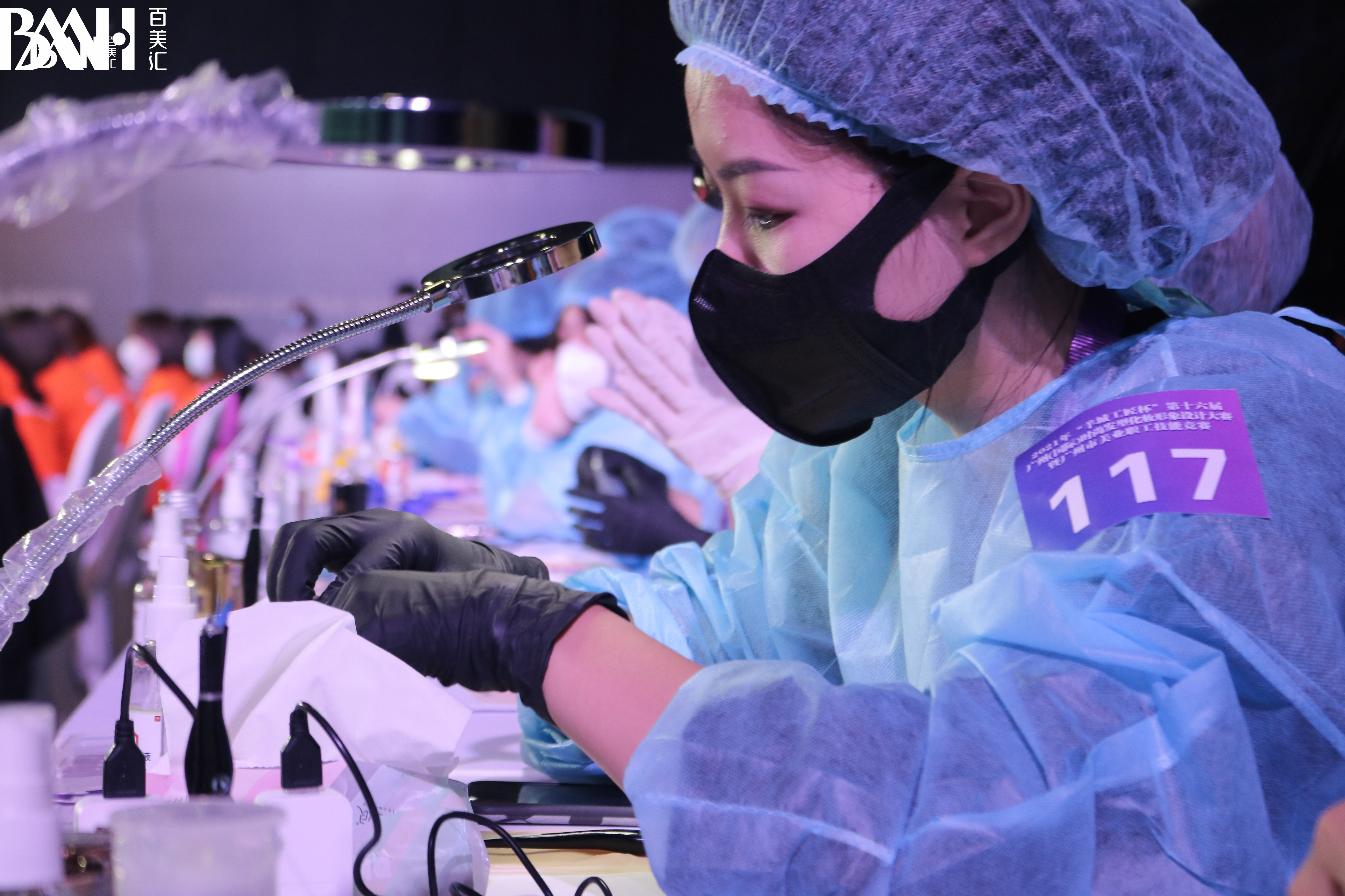 整个赛场上多个项目同时进行。本届大赛按照国家职业资格高级考核标准实施,分为美发、美容、化妆、美甲、形象设计、纹绣6个工种。