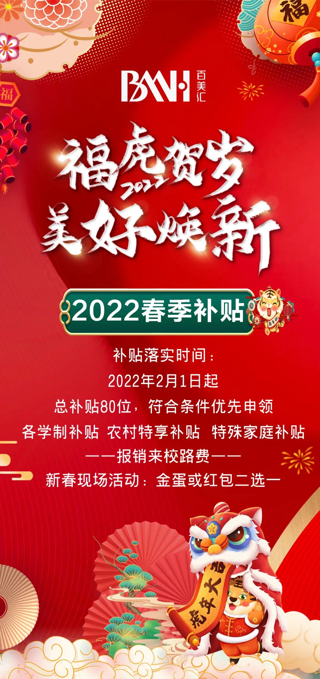 现在春季报名不仅有学费补贴、还有车费补贴、特殊家庭补贴、以及抽奖活动等你来拿!